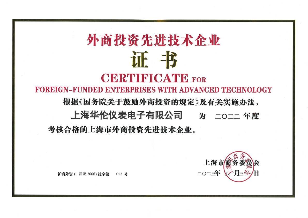 2023年8月,公司再获“外商投资先进技术企业”证书